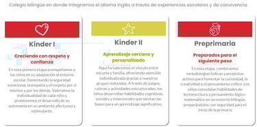 Aquí consolidan habilidades académicas, emocionales y sociales en un entorno bilingüe, cálido y estimulante.